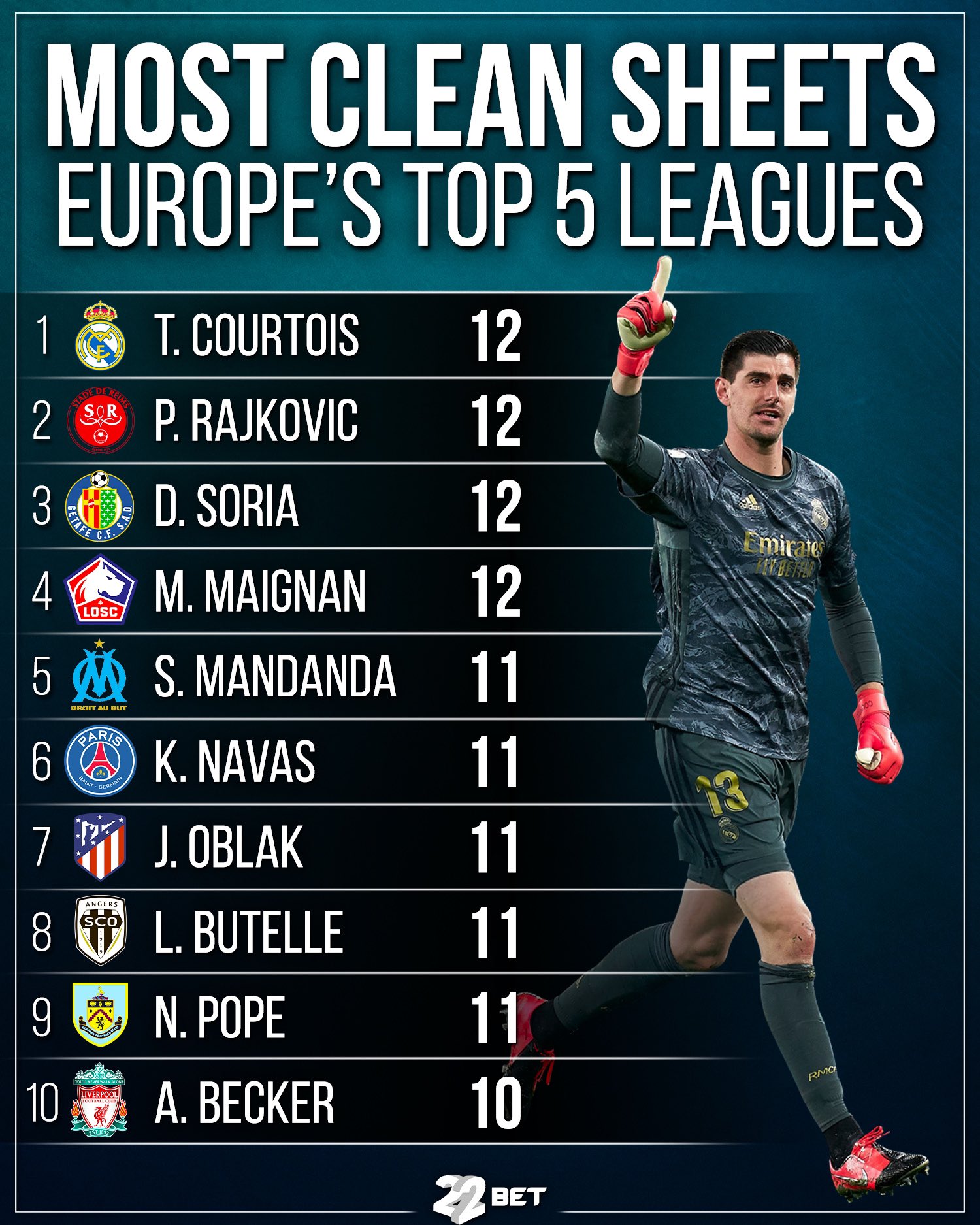 22bet On Twitter Best Goalkeepers Of The Season Before The Break Football Fussball Soccer Courtois Rajkovic Realmadrid Reims Soria Getafe Maignan Losc Mandanda Marseille Navas Psg Oblak Atleticomadrid Janoblak Butelle